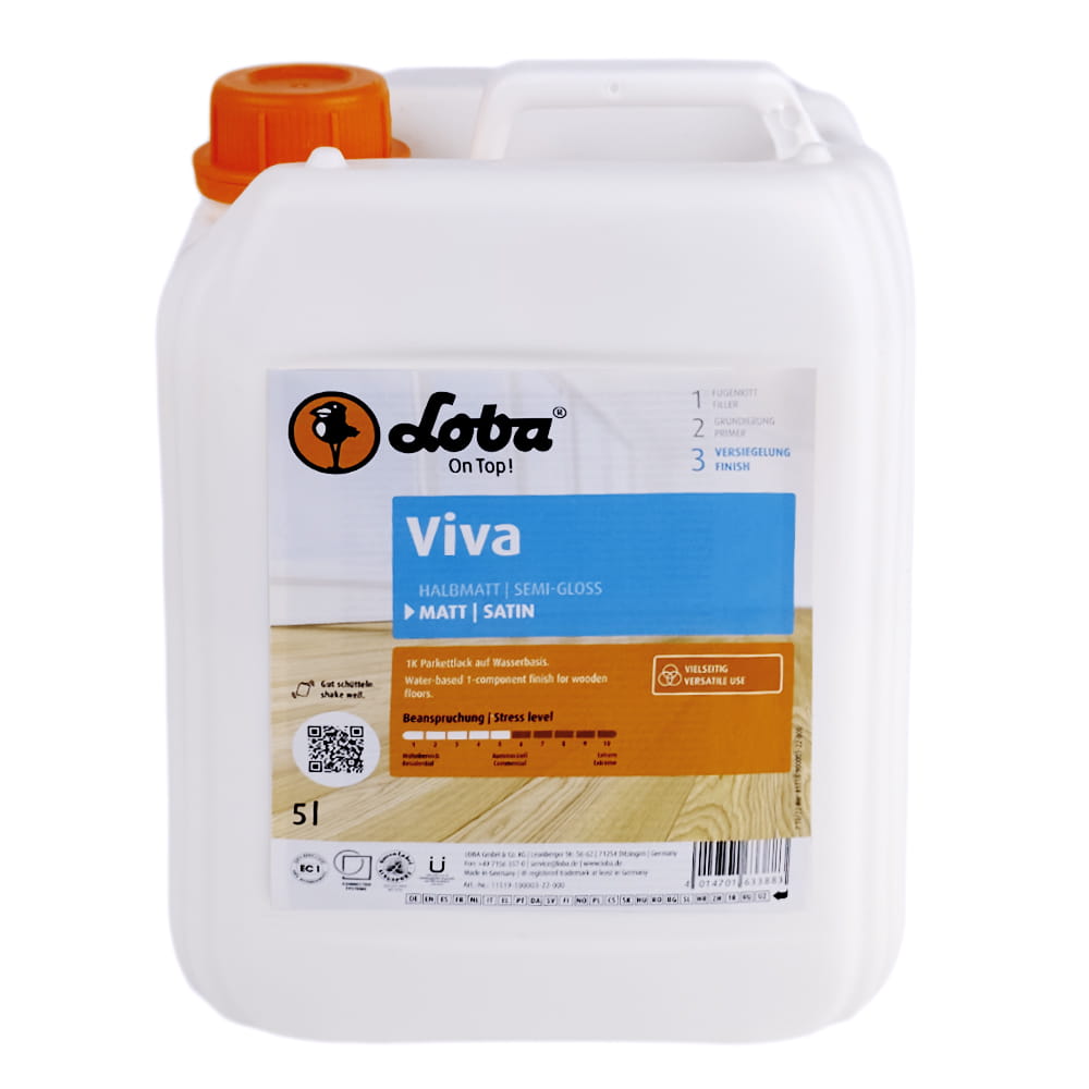LOBADUR ® WS Viva, (stopień połysku ok. 19 glosów), to jednoskładnikowy wodnorozcieńczalny lakier do parkietu i podłóg drewnianych. Lakier WS Viva jest przeznaczony do najróżniejszych pomieszczeń: parkiet i podłogi drewniane od normalnej do dużej obciążalności. Charakteryzuje się dobrą odpornością na środki chemiczne.