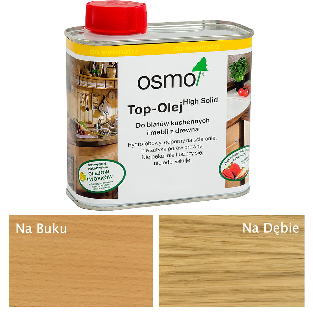 OSMO 3028 Top - Olej Bezbarwny do Blatów Kuchennych Jedwabisty Połysk to specjalna kombinacja wosku olejnego opracowana specjalnie do mebli i blatów kuchennych z drewna. Olej ten dopuszczony jest do kontaktu z żywnością, jest atestowany.