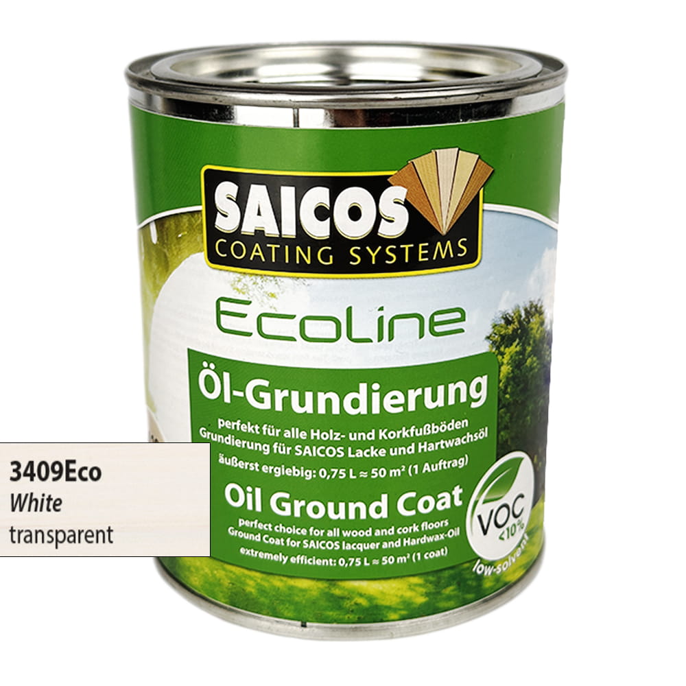 Olej SAICOS 3409 Ecoline Grunt Olejowy Biały, nie zamyka porów drewna, utrzymuje przepuszczalność powietrza, jest łatwy w obróbce i miejscowo odnawialny. Odpowiada normom emisji lotnych związków organicznych VOC 2010. Posiada wysoką grupę przeciwpoślizgową R9 (DIN 51130/2004-06).