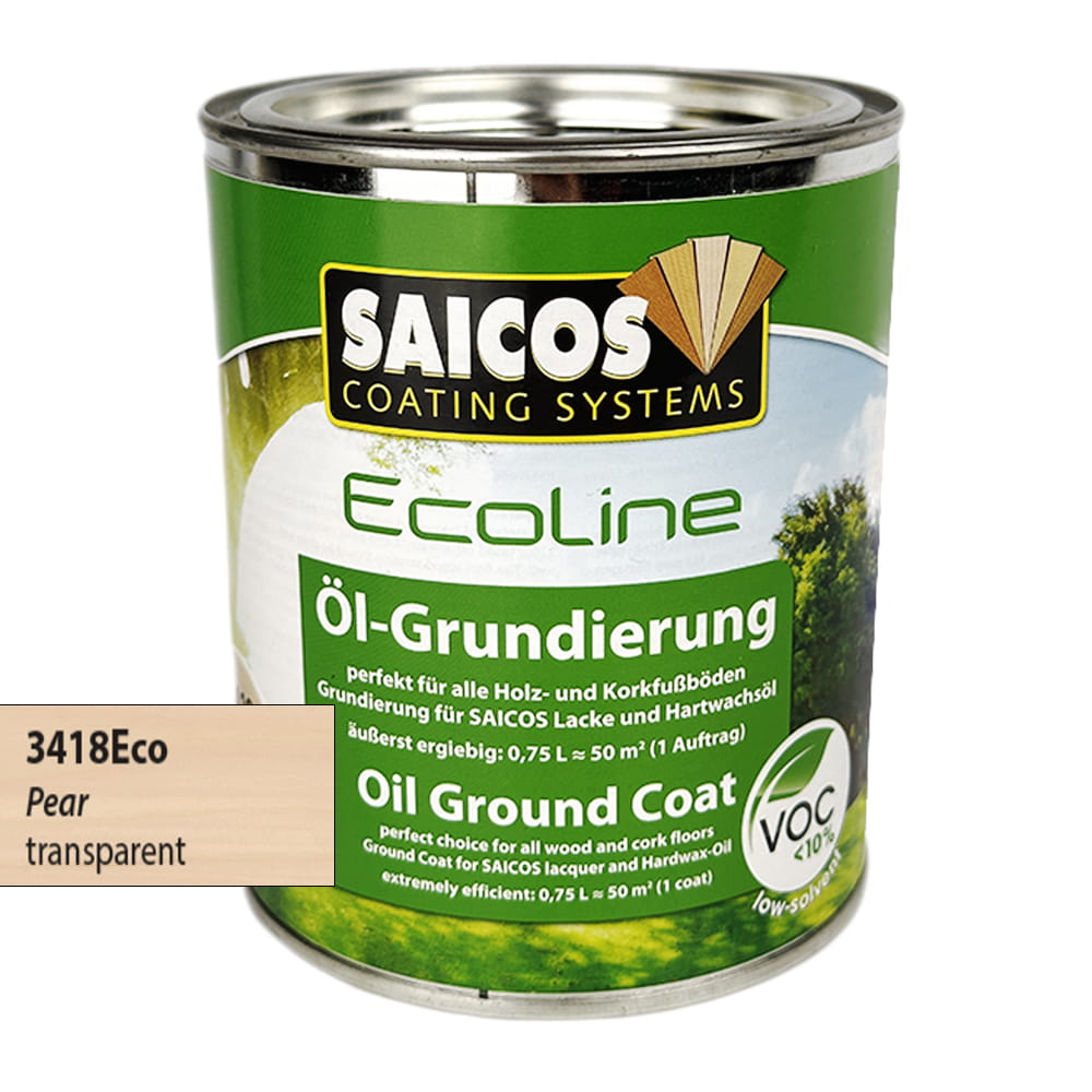 Olej SAICOS 3418 Ecoline Grunt Olejowy Grusza nie zamyka porów drewna, utrzymuje przepuszczalność powietrza, jest łatwy w obróbce i miejscowo odnawialny. Odpowiada normom emisji lotnych związków organicznych VOC 2010. Posiada wysoką grupę przeciwpoślizgową R9 (DIN 51130/2004-06).