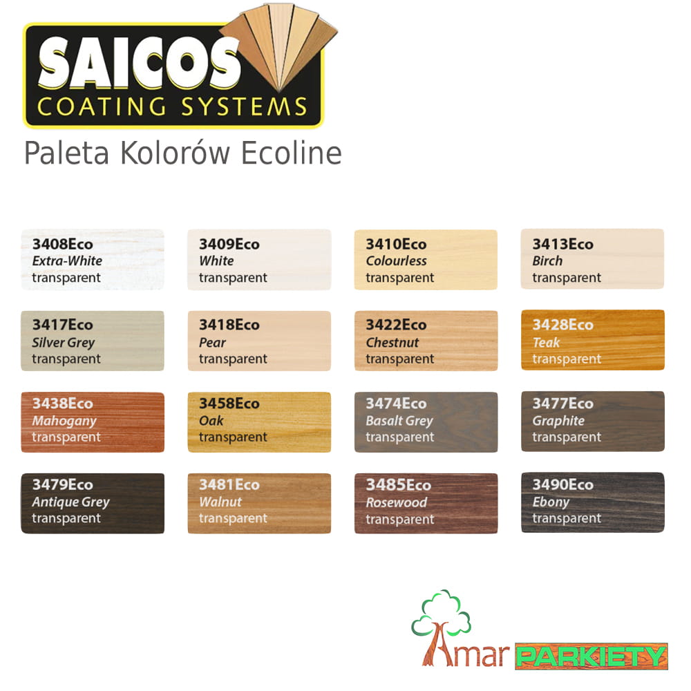 Olej SAICOS 3490 Ecoline Grunt Olejowy Ebenholz nie zamyka porów drewna, utrzymuje przepuszczalność powietrza, jest łatwy w obróbce i miejscowo odnawialny. Odpowiada normom emisji lotnych związków organicznych VOC 2010. Posiada wysoką grupę przeciwpoślizgową R9 (DIN 51130/2004-06).